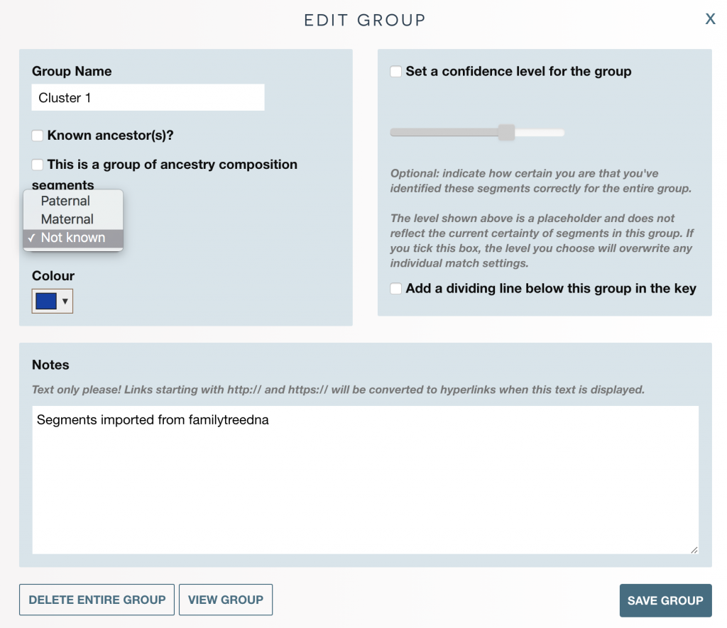 I hope in future to be able to add a way to store and make notes on AncestryDNA and other clusters within DNA Painter in a way that doesn’t involve segments.