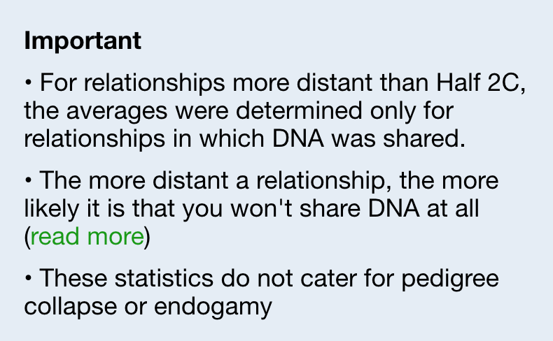 Note that this isn’t therefore saying that 25cM is the average amount you’ll share with a 5th cousin, just that of those you *do* share DNA with, the average recorded was 25cM.