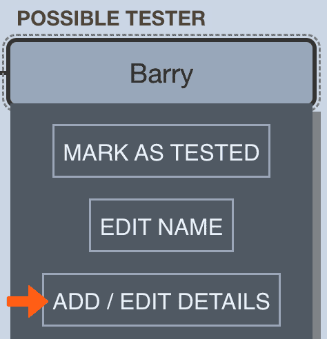If someone in the tree is available to test, the tool indicates this visually with an additional dashed border. When you hover over these people in the tree, you’ll see a POSSIBLE TESTER badge.
