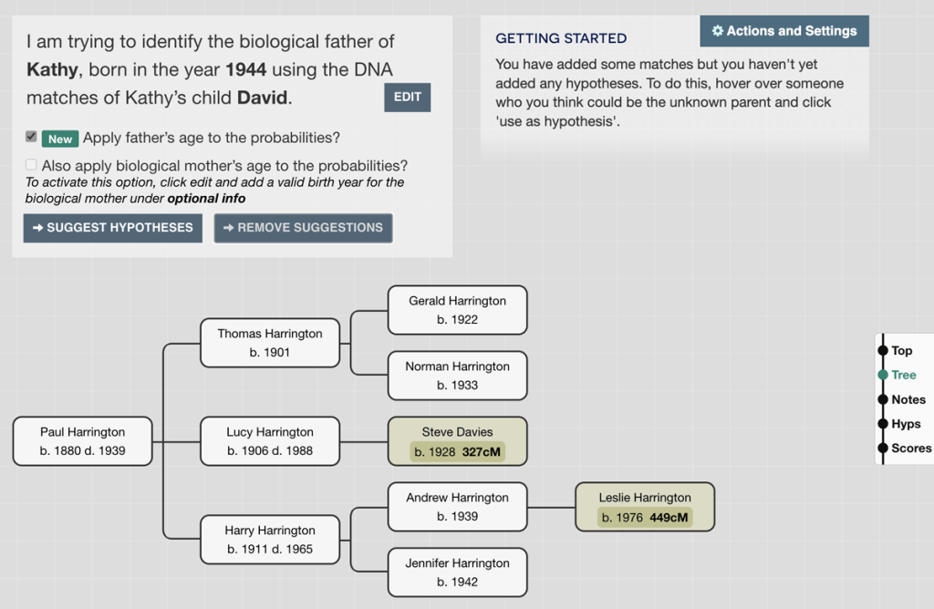 Before clicking Suggest Hypotheses, make sure you have a birth year for as many people in the tree as possible. If you don’t know them, an estimate will still help.