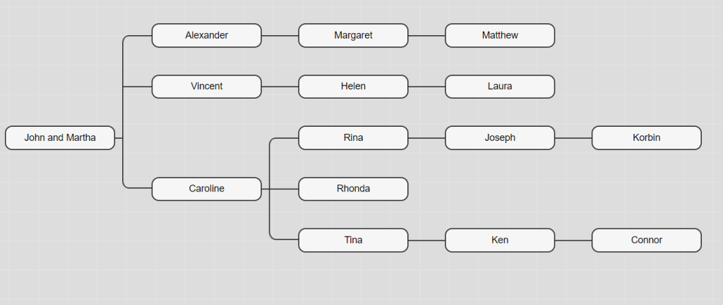 They share a common ancestral couple, John and Martha, as follows: