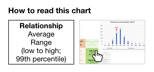 - For example, 600 represents all the submissions for ‘Half Aunt / Uncle’ that were between 501 and 600cM