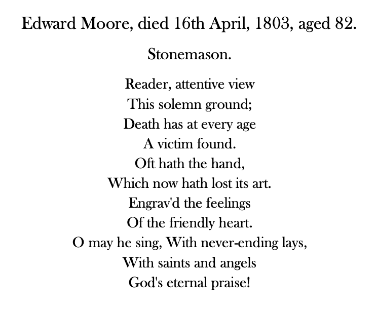 Using that most basic of genealogical research tools, Google, I uncovered an interesting document about 10 years ago that included a memorial inscription. The deceased was Edward Moore, a stonemason from Havant.